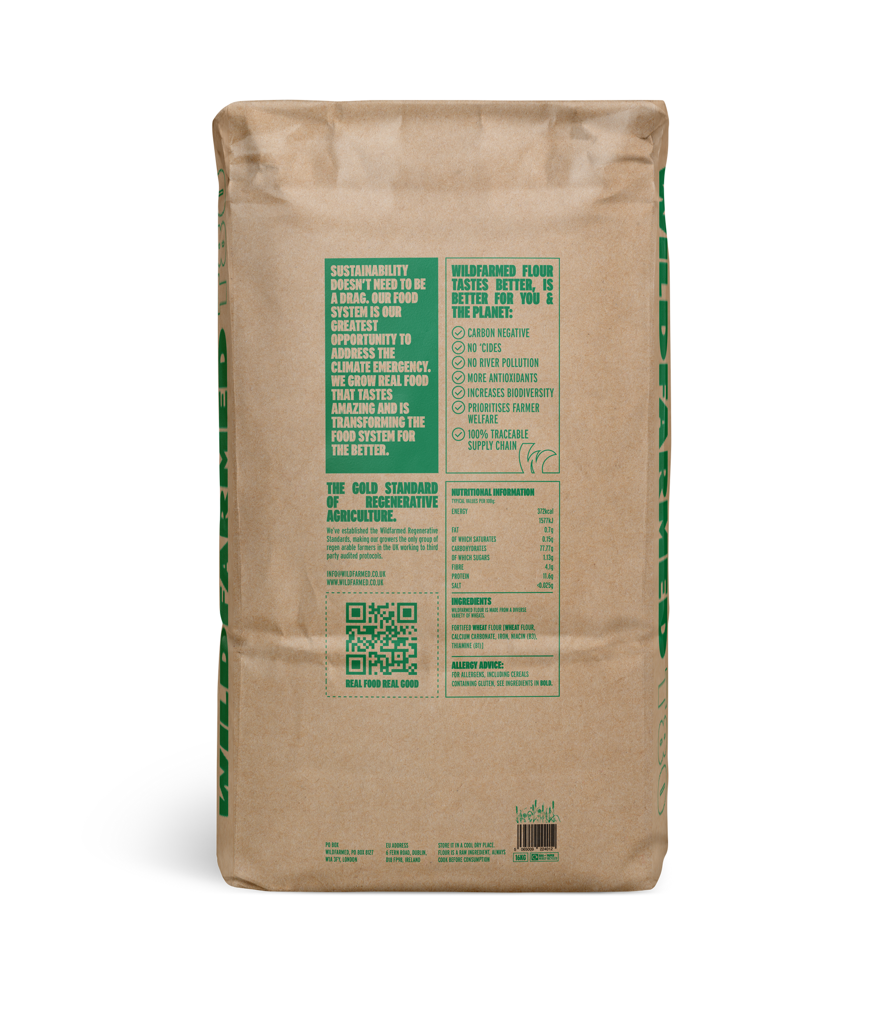 Grown by Wildfarmed's community of regenerative farmers, this flour is increasing biodiversity, improving soil health, minimising water pollution and reducing carbon. Better farms are Wildfarmed.